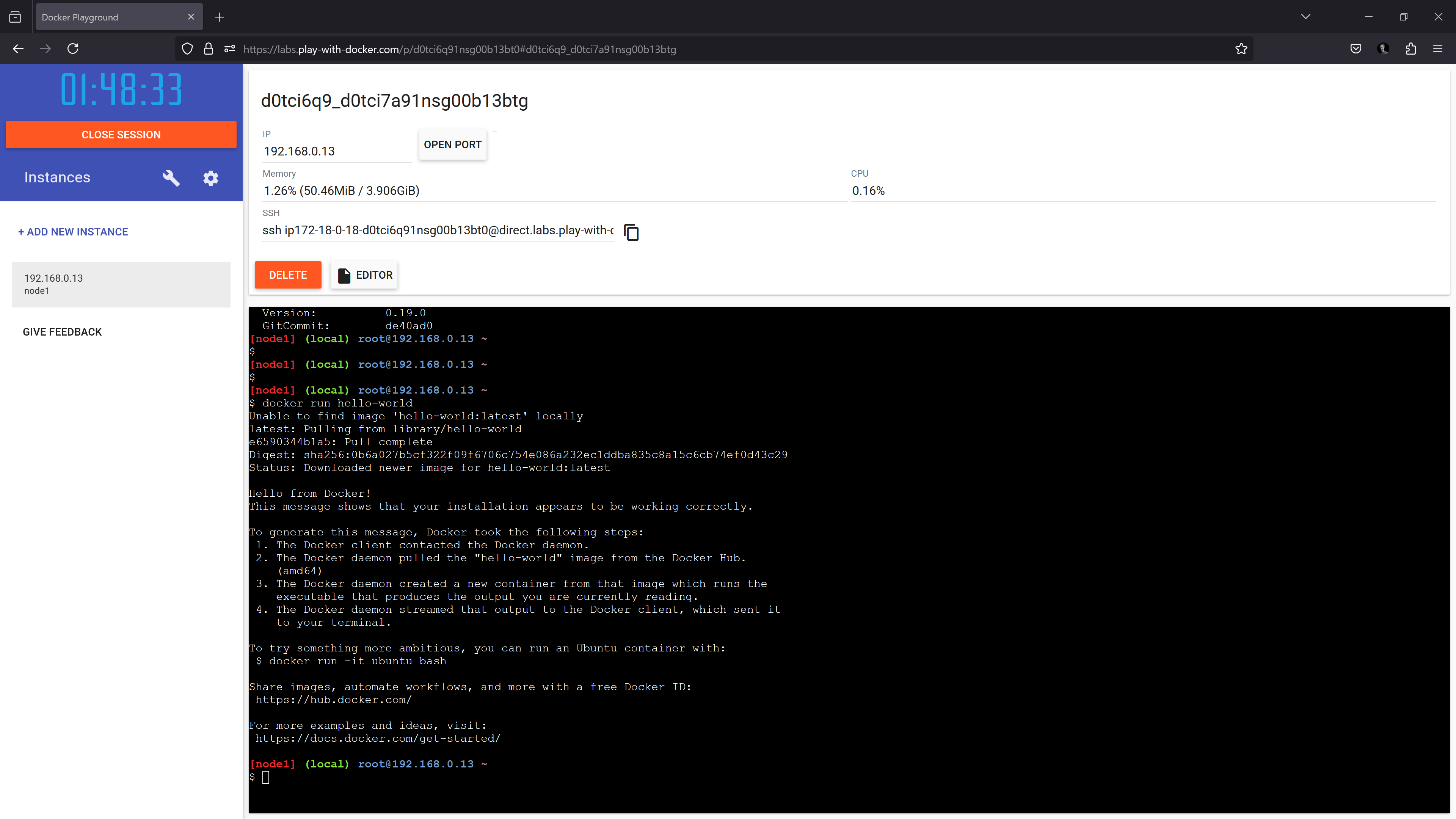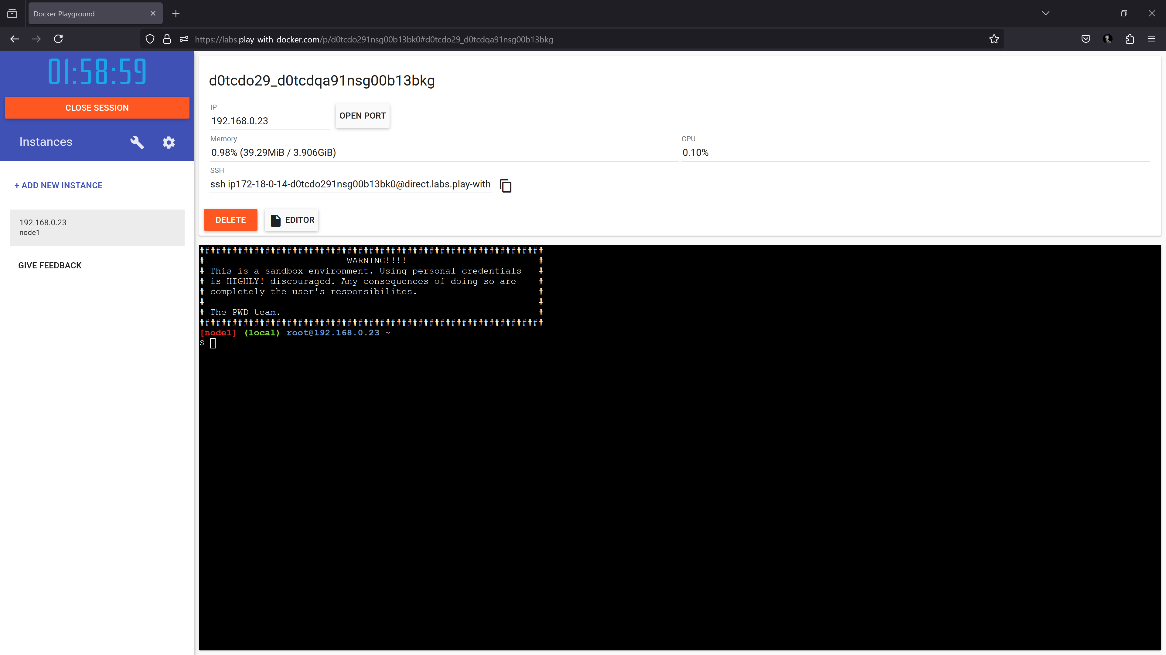 Wenn du gerade erst mit Docker beginnst und es mit minimalem Aufwand ausprobieren möchtest, kannst du es direkt im Browser über die Webseite https://labs.play-with-docker.com/ ausprobieren. Du musst dich auf dieser Seite mit deinem Docker-Account anmelden.