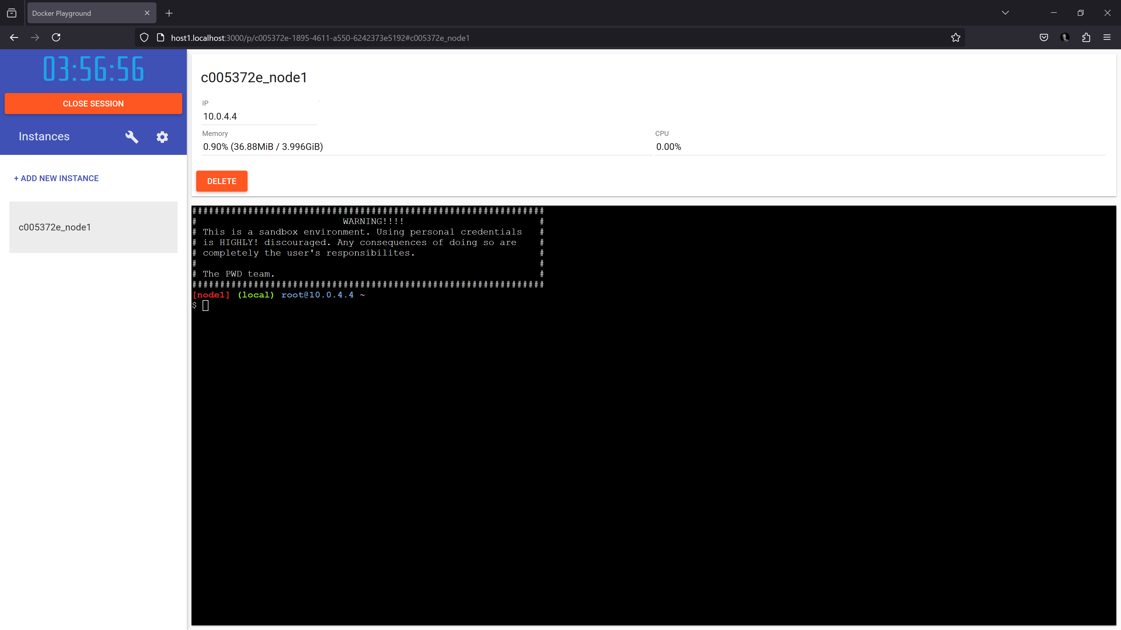 Nach dem Start des obigen Docker-Befehls kannst du im Browser unter http://localhost:3000 Play-with-Docker verwenden und lokal eigene Instanzen starten, die wiederum Docker enthalten.
